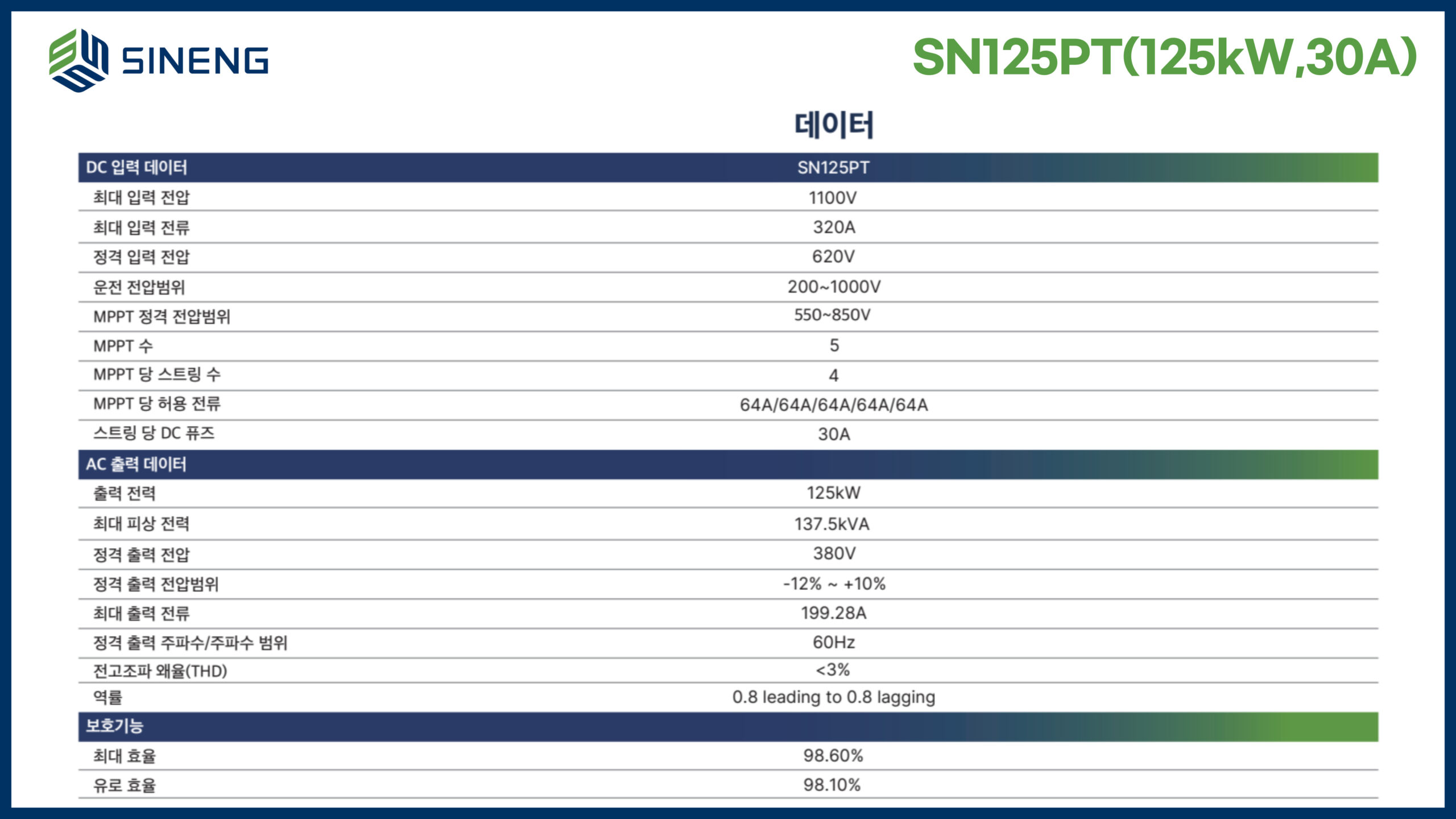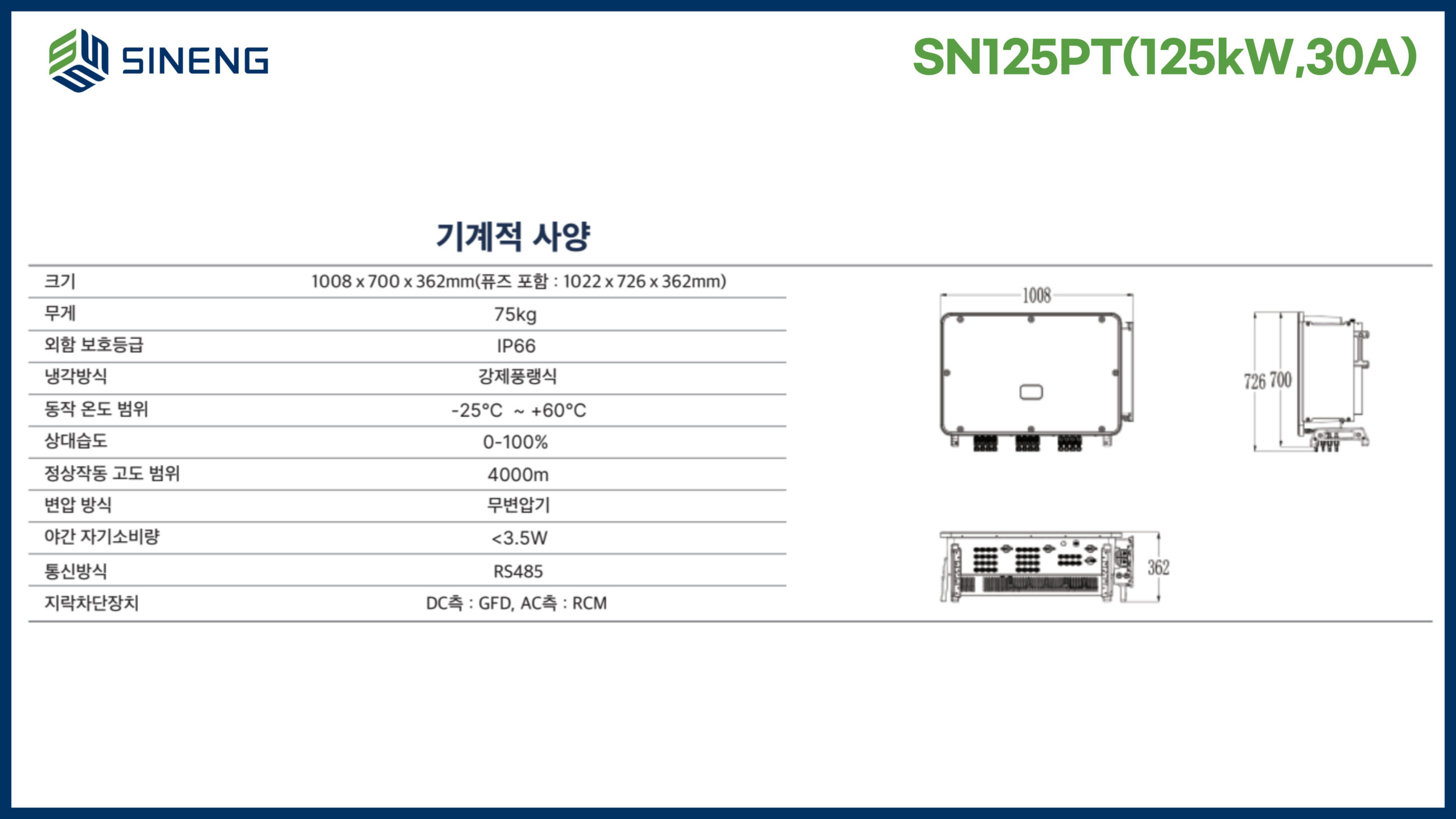 시능 _ SN125PT(125kW,30A) _ 수입